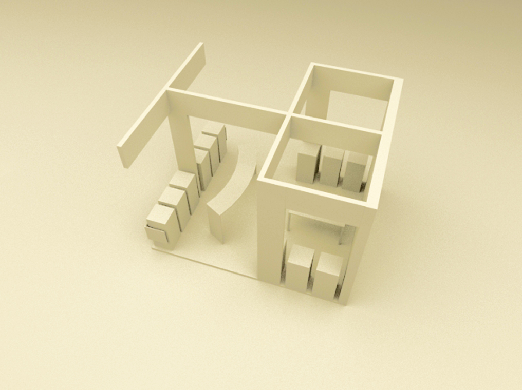 A proposition for a jewellery exhibition kiosk made of mdf wood panels.
