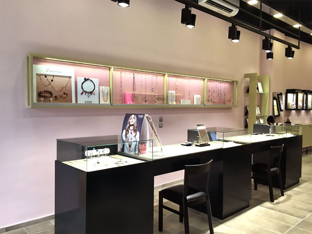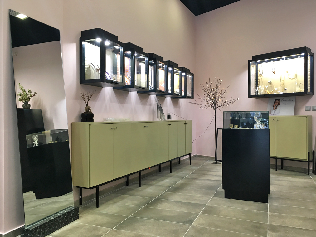 A renovation of an existing jewellery store in the city of Larissa. Some main elements had to be pertained within the design such as the floor and the majority of furniture. The guidelines were about creating a space which feels warm and cozy from the start and has an urban aesthetic.