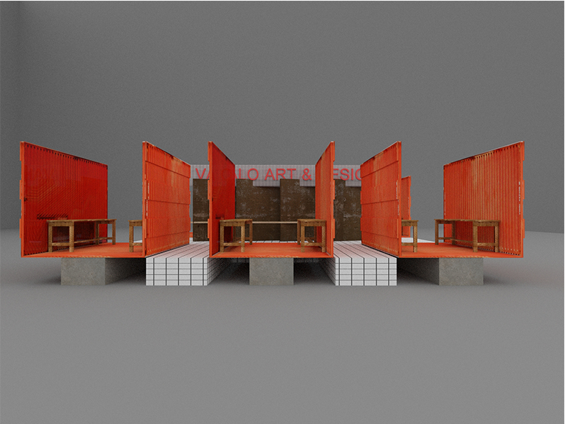 A kiosk designed to present and communicate the student works of Vakalo college. The aim of this project was to depict in the best possible way the procedure and the mentality of the school that works as a tank-hub for new talents and creatives .The metaphor of the design is that the set designed as a ramp hosts and delivers ideas and solutions to the design-interior world in the most effective way.