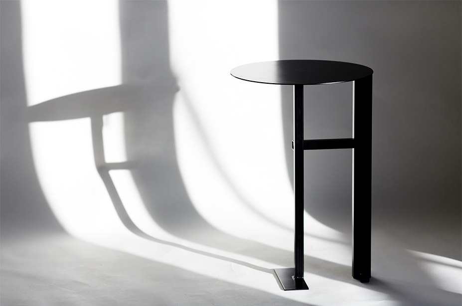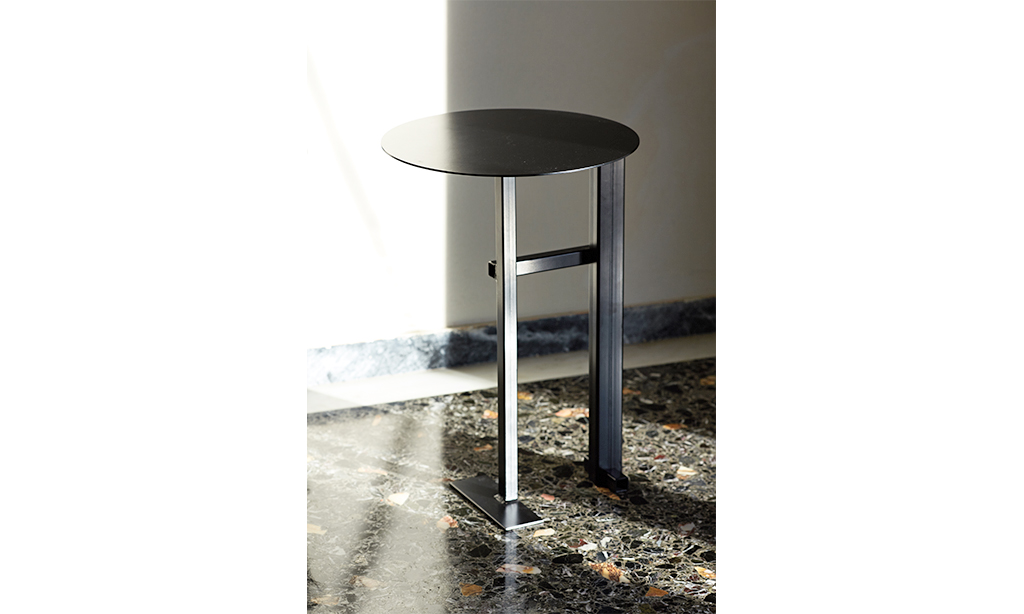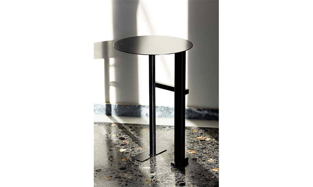 Frisbee side table is a piece of furniture that acts as an exercise of balance . It consists of as little as six parts and nothing on it can be described as redundant. The volumes that make it up are rectangular tubes and sheets of iron and help to create a sleek silhouette with as little weight as possible . It can act as a side table that can serve lots of practical purposes and it can also be seen as a decorative addition in a space , like a sculpture that also performs a function. Its lines are inspired by the Bauhaus and De stijl movements and as a result they create a clean and serene symmetry which renders the whole composition a contemporary classic.